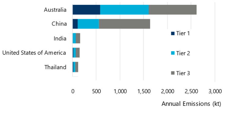 And the same thing can be done at a country level. Obviously, Australia is going to be chief Scope 3 emitter here, and perhaps not surprisingly followed by China, with the others following well behind.