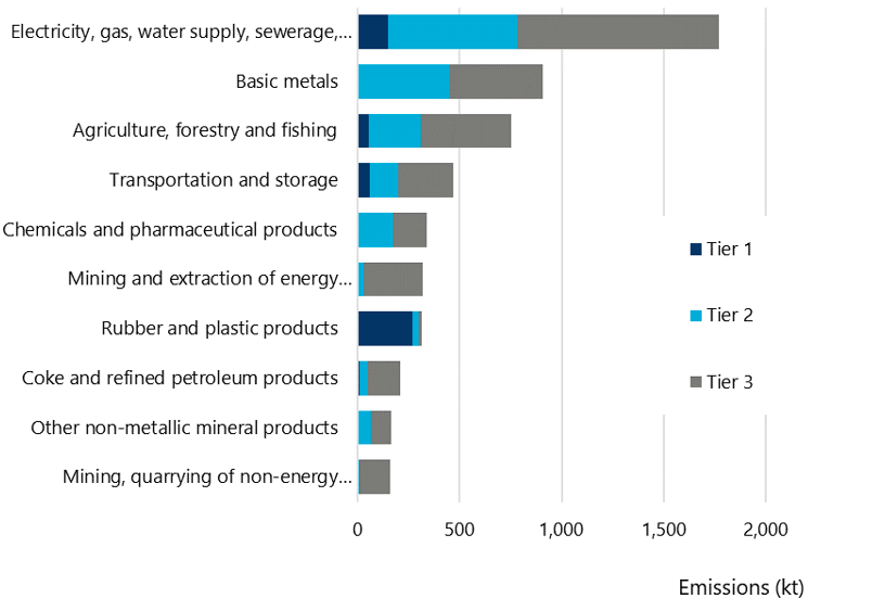 As indicated, utilities (electricity, gas and water) are a big Scope 3 emitter for retail, followed by basic metals and agriculture.