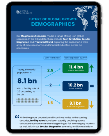 The depth of our data services, the expertise of our economists, our global modelling capabilities, and our technical expertise allow us to tailor data, forecasts and scenarios to your specifications.