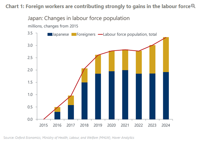 We believe the huge increase in foreign workers in Japan will prove unsustainable, despite the considerable labour shortages across various sectors, caused by unfavourable demographics. As shown by the far right’s progress at the recent election, Japan isn’t ready to drastically transform policy and society to accommodate large numbers of foreign workers as full citizens, rather than as ‘guest workers’.