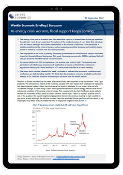 - The latest batch of data released this week continues to indicate that economic conditions and confidence are deteriorating rapidly. We think that the eurozone economy probably contracted already in Q3, with the situation worsening as we move into the winter period.