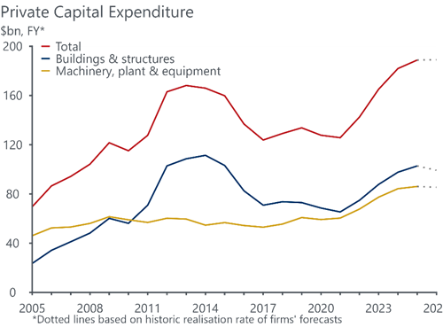 - Today’s data are an encouraging sign that heightened economic uncertainty did not take too much of a toll on Australian businesses in Q2. Nevertheless, some of these impacts may come through with a lag. Firms’ expectations for next year’s spending have been wound back a little and point to very little growth in business investment in FY26.