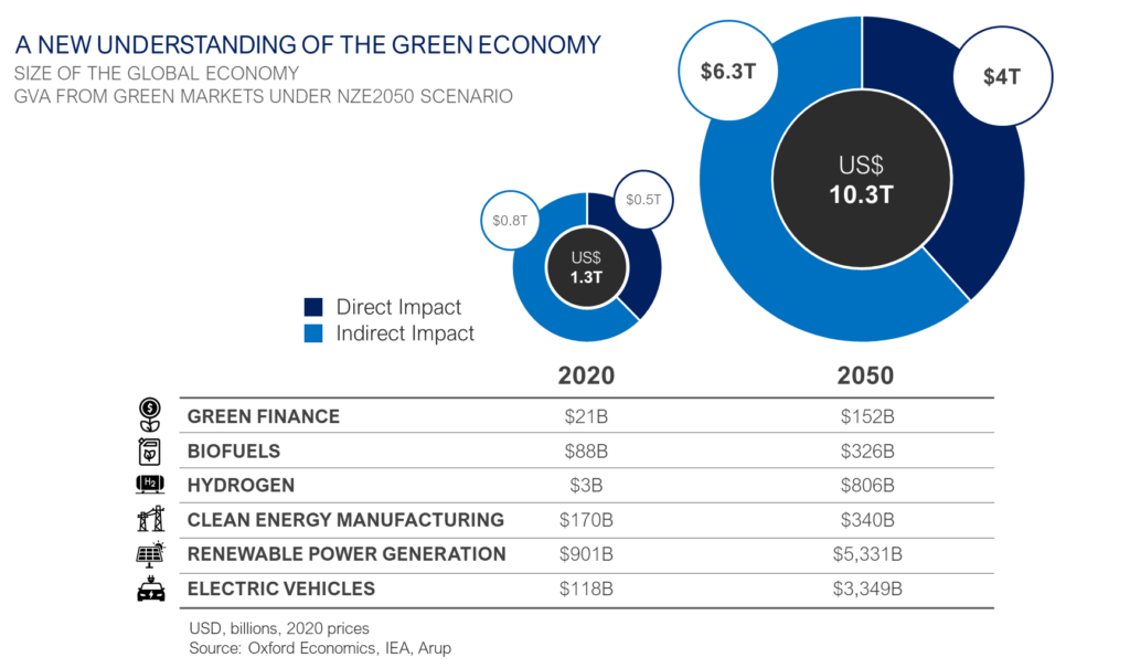 On the same day that the WEF revealed its grim poll findings, a diverse team of experts at Oxford Economics and Arup published new analysis into the opportunities the world’s transition to a greener economy would represent for businesses and investors prepared to make the changes needed.