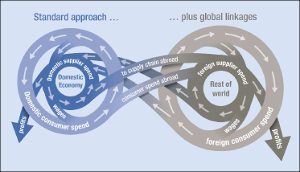 Traditionally a firm’s operations and suppliers outside of the main country of analysis, as well as trade impact they have on an economy, have been beyond the capacity of standard impact models. Such activities are known as ‘leakage’ from the analysis. These limitations have meant conventional impact studies inevitably understate a global company’s national economic contribution, although they still quantify important effects.
