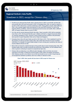 • As is the case for several advanced Pacific Asia cities, Tokyo’s growth in 2022 will be somewhat lower than in 2021. We forecast that this year’s inflation will lead to a lagged downwards effect on consumer spending in Tokyo, and also in Seoul. Global economic weakness will particularly harm growth in export dependent cities such as Taipei and Singapore.