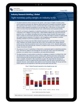 • Energy prices in Europe may have fallen sharply from last year’s peak but inflation is proving sticky, leading to two further interest rate rises in 2023. On a positive note, energy-intensive sectors such as chemicals production look to have turned a corner.
