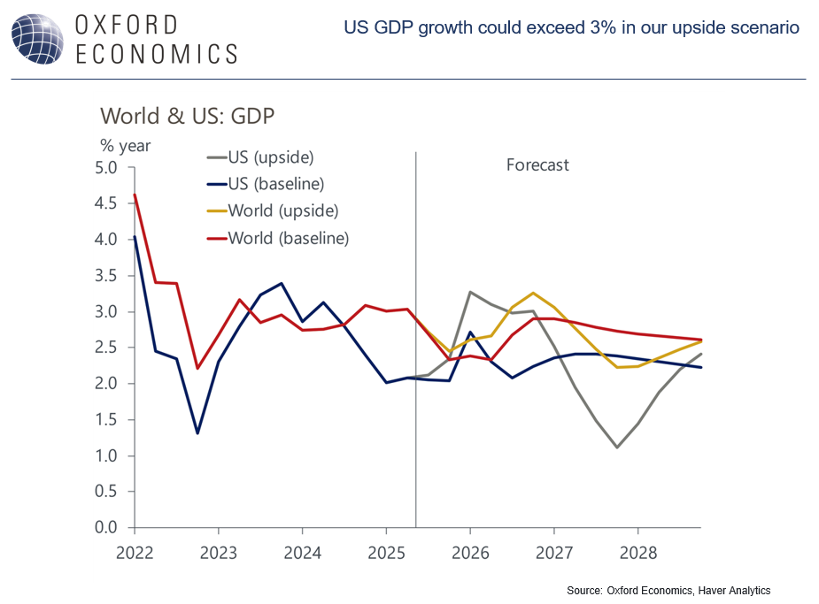 - If tech capital spending continues to grow sharply, mirroring the 1990s upswing, US GDP could surge to around 3% next year.