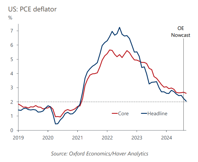 • Our estimates imply that headline PCE inflation will fall to 2.1% in September from 2.2% and core PCE inflation to 2.6% from 2.7%.