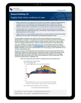 - Supply chains are in a much healthier position today, so we have decided to suspend this monthly publication. We will monitor developments and intermittently update the index.