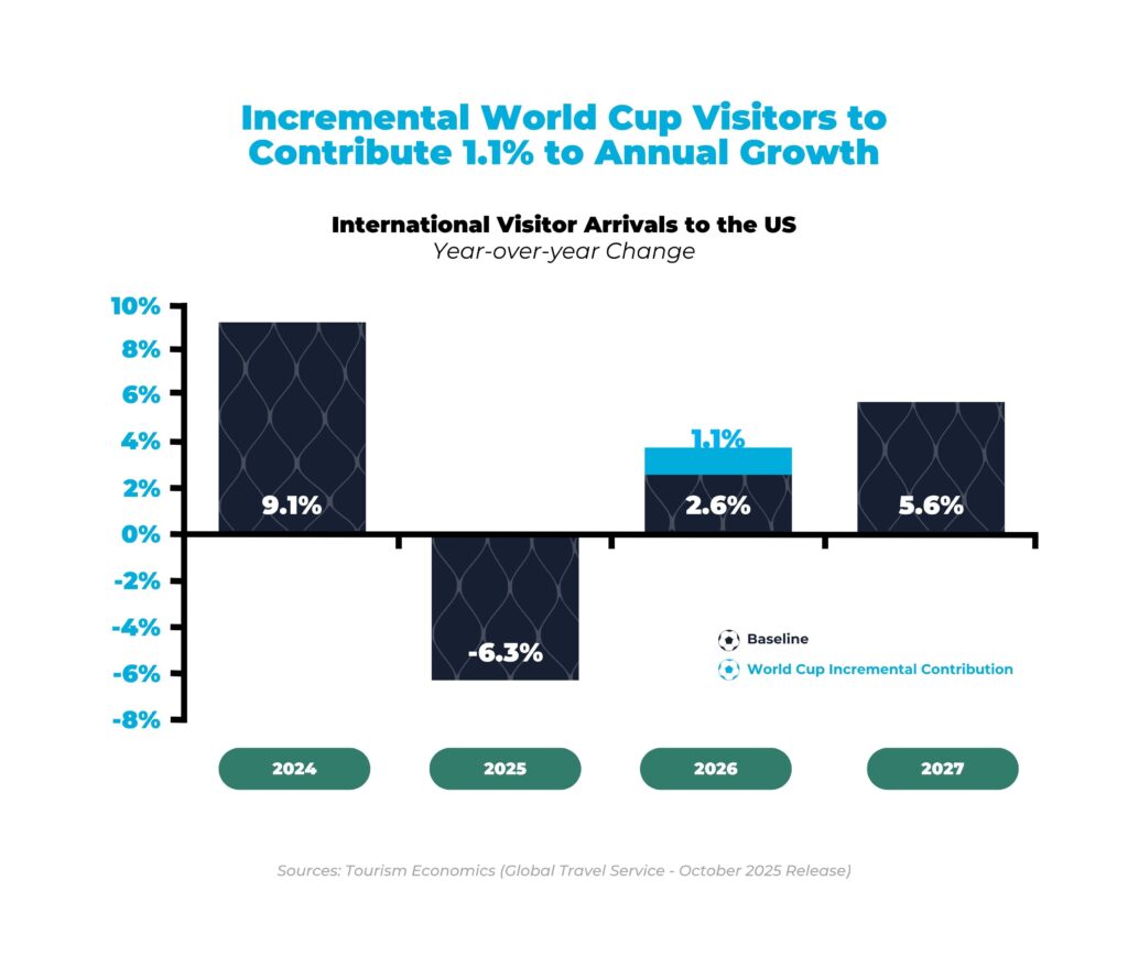 The countdown to the 2026 FIFA World Cup begins, as the United States prepares for a surge of global visitors unlike any other. With matches spanning 16 host cities, we expect the tournament to spark a powerful rebound in international travel—revitalizing demand, filling hotels, and showcasing the broad economic reach of mega-events.