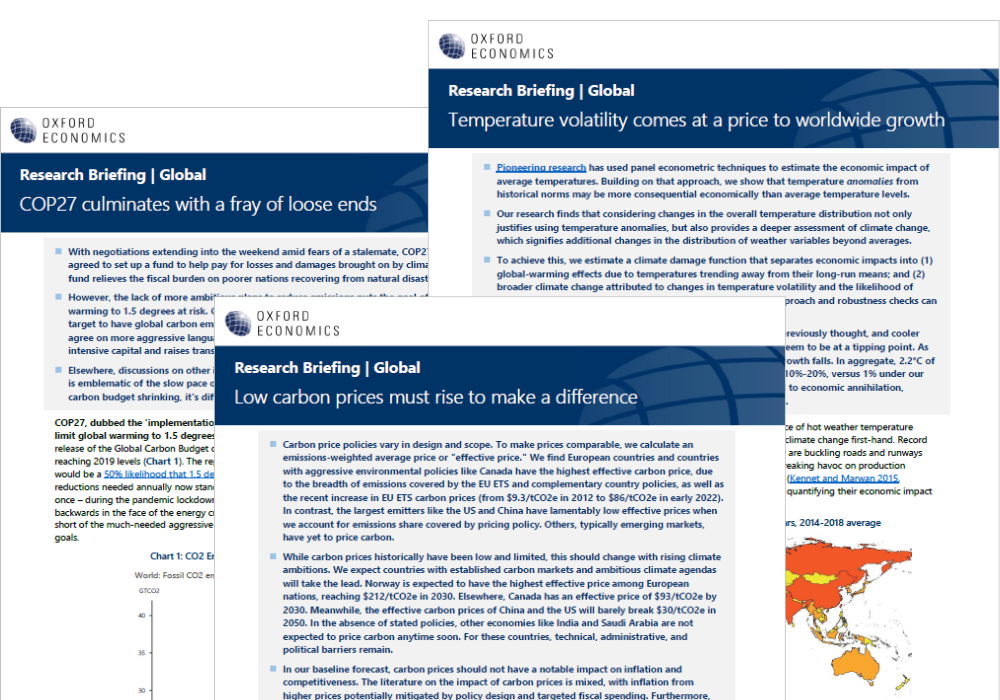 “We wanted to bring our climate assumptions and scenarios more in line with those used by central banks in their climate stress test analysis, so we have worked with Oxford Economics to apply their climate macro model to our productivity, GDP and inflation forecasts. Oxford Economics has always been available to respond to our queries and provided insightful explanations for the impact of carbon pricing on macroeconomic activity in their model. We are very satisfied with their rigorous approach in modelling climate change and are happy to have collaborated with them.”