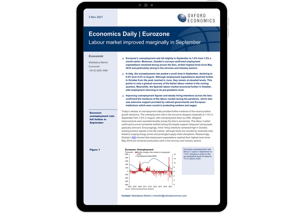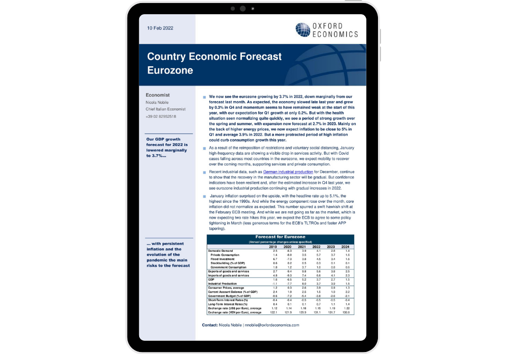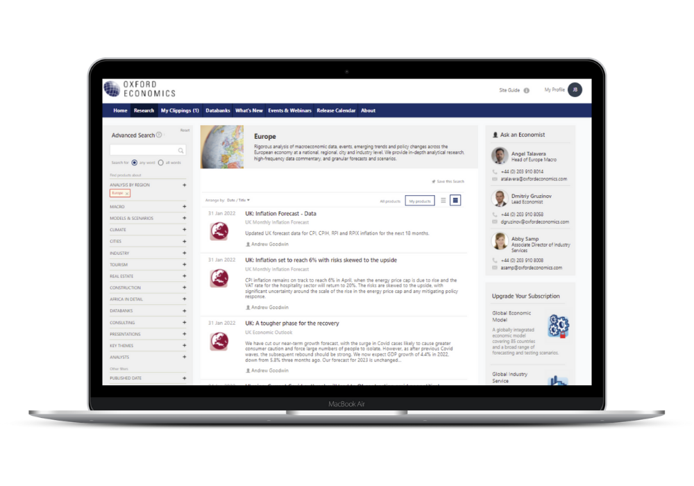Our European Macro Service combines local expertise with our global forecasting and modelling approach and provides the user with access to unparalleled research and in-depth economic data across Europe and its individual countries.