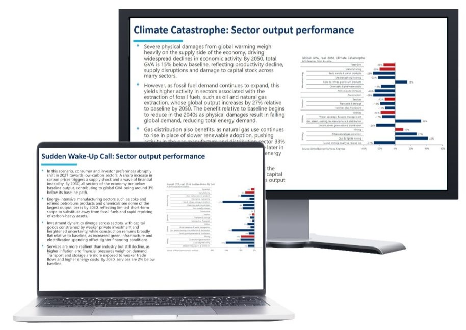 - Inform your climate strategy with model-backed insights. Quantify how physical and transition risks could affect growth prospects, output, and sales trends across more than 100 sectors.