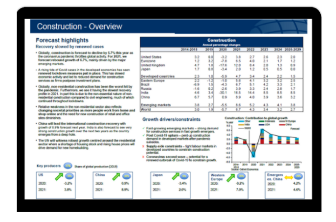 - Expert support: Our global team of experts in macroeconomics and construction gives you direct access to timely guidance and tailored interpretation of our forecasts and data.
